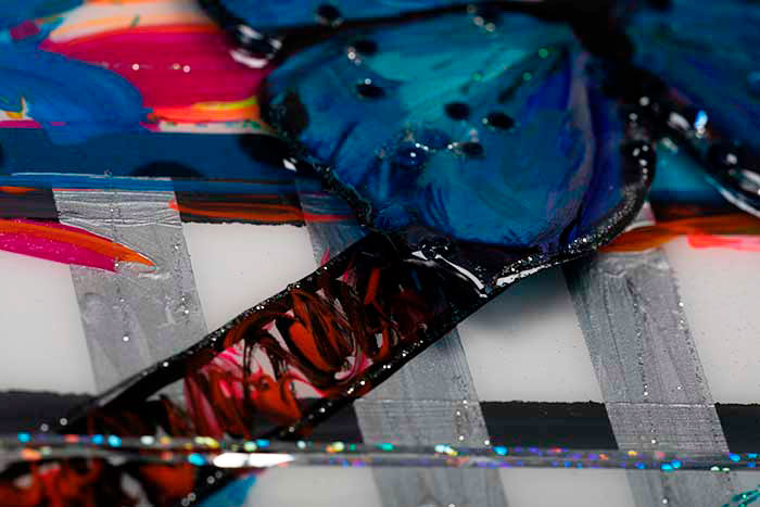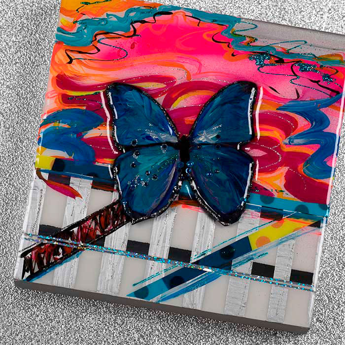 Farbenfroh auf XL-Gessoboard gemalt und aufwändig mit Resin überzogen für einen tollen Glanz-Effekt. Details als 3D-Erhebung sorgen für das gewisse Etwas.