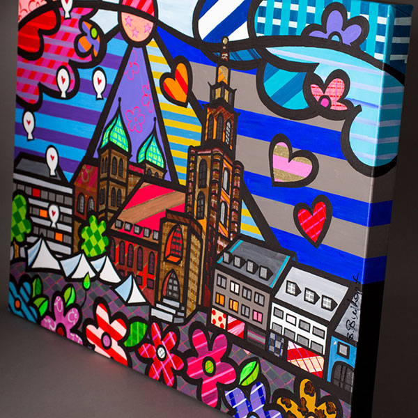 Bettina Breitkopf malt die Freiheitsstatue, den Eiffelturm, den Reichstag usw., am liebsten in dieser einen Farbe. Als Rheinländerin und „rheinische Frohnatur“ malt sie die schönsten Städte, und nicht nur die am Rhein. Bauten, Denkmäler und Landschaften stellt sie gerne in totalbunt dar, nach dem Motto: Alte Traditionen übersetzt in modernen Lifestyle, poppig und farbenfroh.