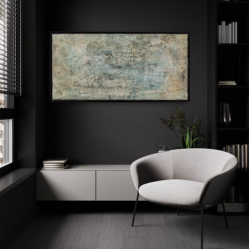 Ausführung: Sumpfkalk, Marmormehl , Beize und Pigmente auf Leinwand!