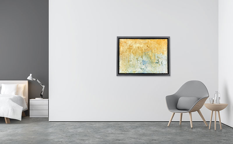 Ausführung: Marmormehl, Sumpfkalk, Tuschen auf Leinwand im Schattenfugenrahmen.